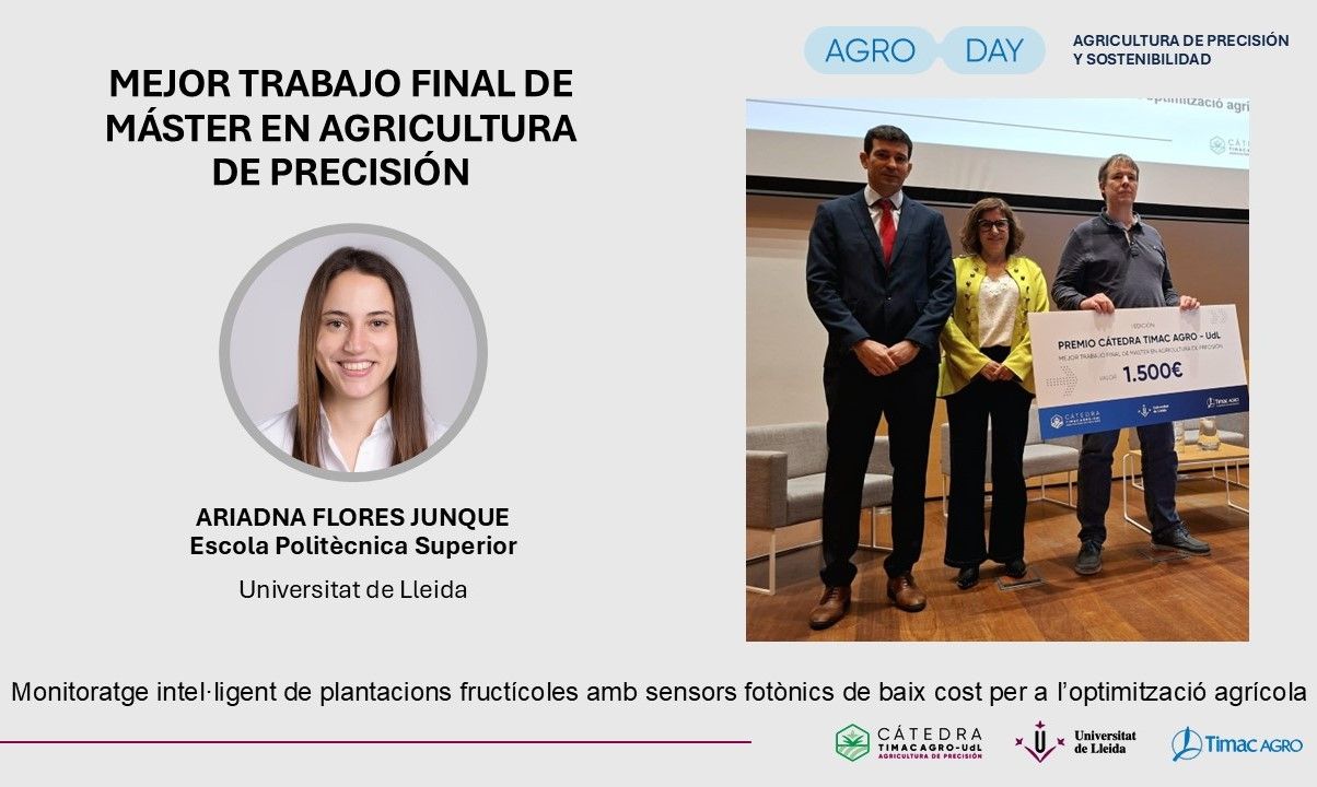 el Treball Final de Màster, "Monitoratge intel·ligent de plantacions fructícoles amb sensors fotònics de baix cost per a l’optimització agrícola", d'Ariadna Flores Junqué ha estat tutoritzat pel professor de l'EPS i membre del Grup de Recerca en AgròTICa i Agricultura i Ramaderia de Precisió (GRAP), Eduard Gregorio López.
